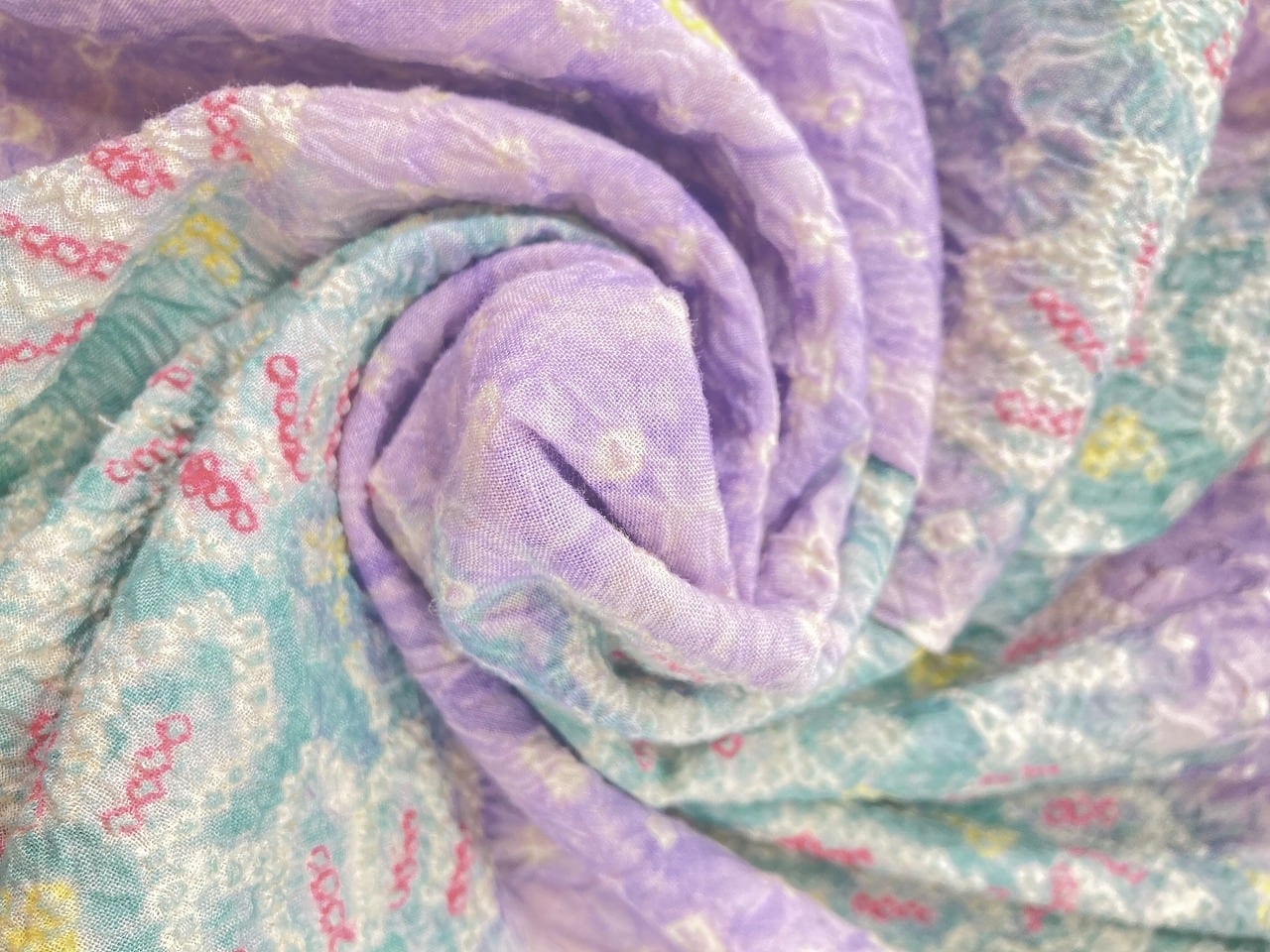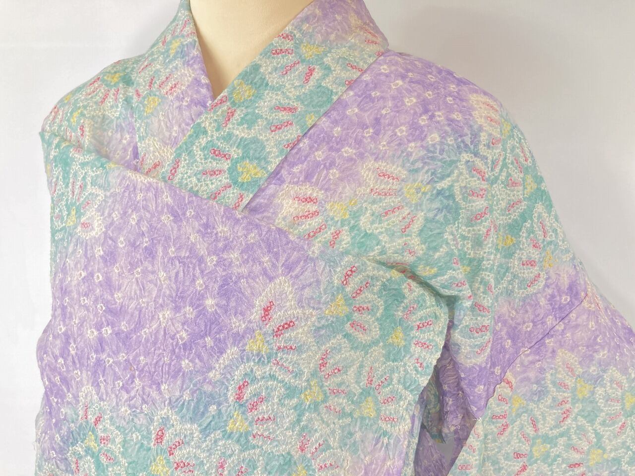 有松絞り【浴衣】花柄 綿 夏着物 有松鳴海絞り 紫 黄緑 パステルカラー 103