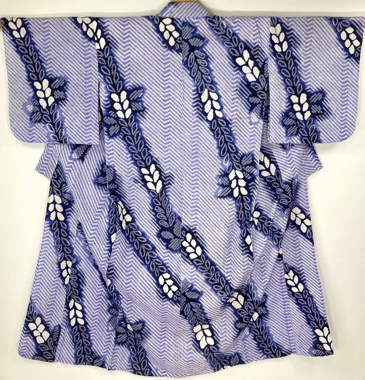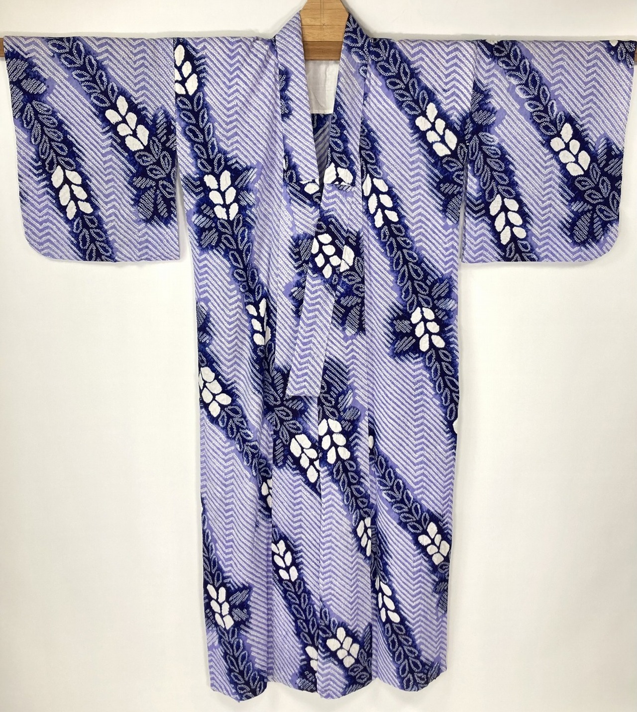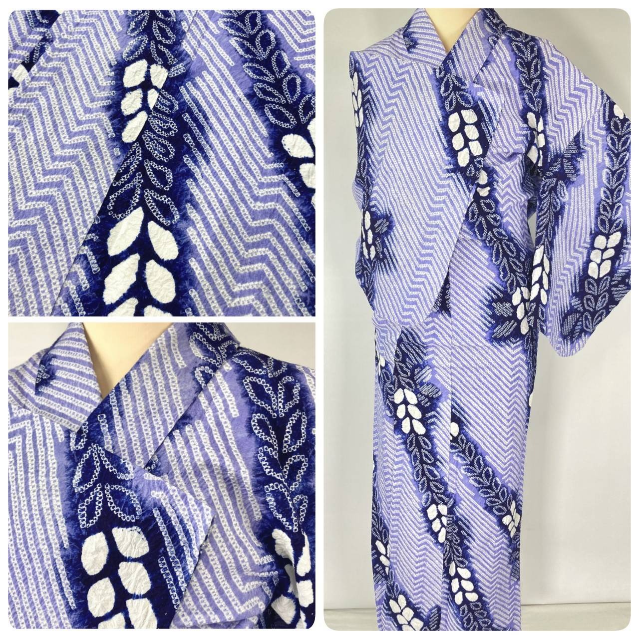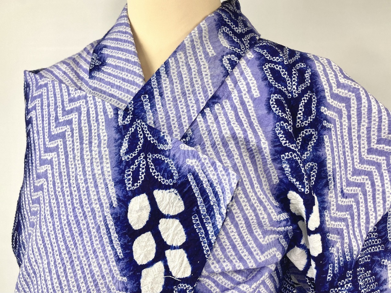 有松絞り【浴衣】藤の花 綿 夏着物 有松鳴海絞り 紫 藍色 白 藤色 100