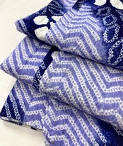綿を藍で染めたものが代表的で、他の産地に類を見ない100種類にも及ぶ、絞りや染色の技法があります。