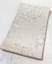 ◇白地に銀糸が煌めき、清楚な白と優しい紫の唐花が映える、気品高く端麗な袋帯です。