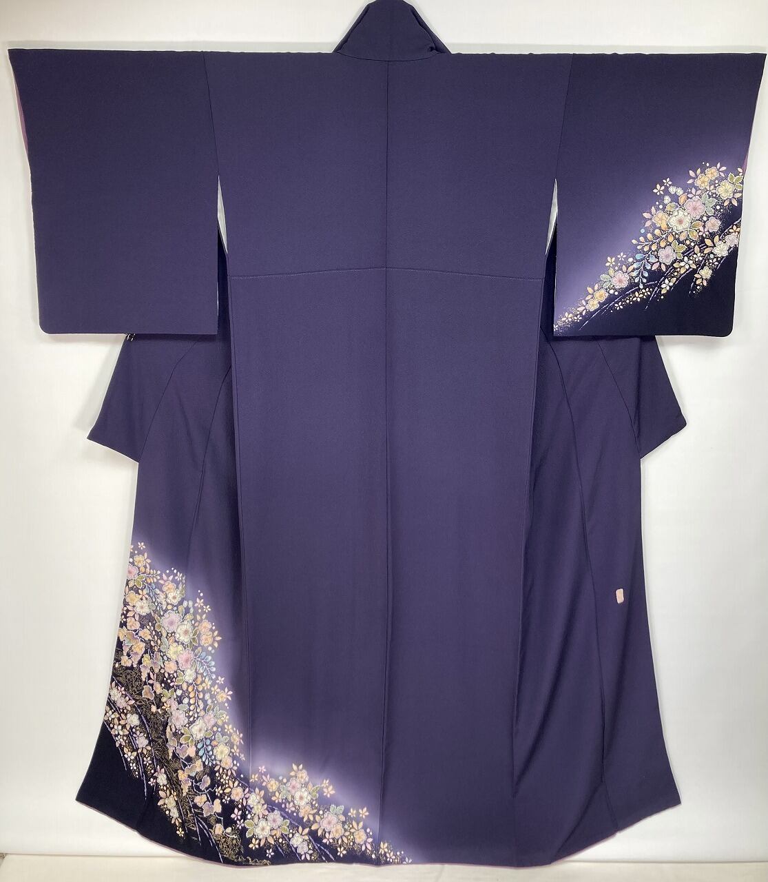 ◇深い紫色に清楚な白と優しいパステルカラーのコントラストが映える、とてもエレガントな高級訪問着です。