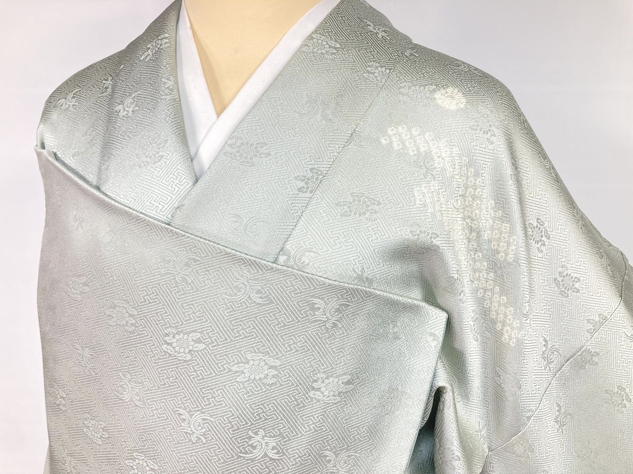 ■やわらかくしっとりとして、手触りの良い上質な「正絹」地に、紗綾型に草花を配したきめ細かな「地紋」を織り出しております。