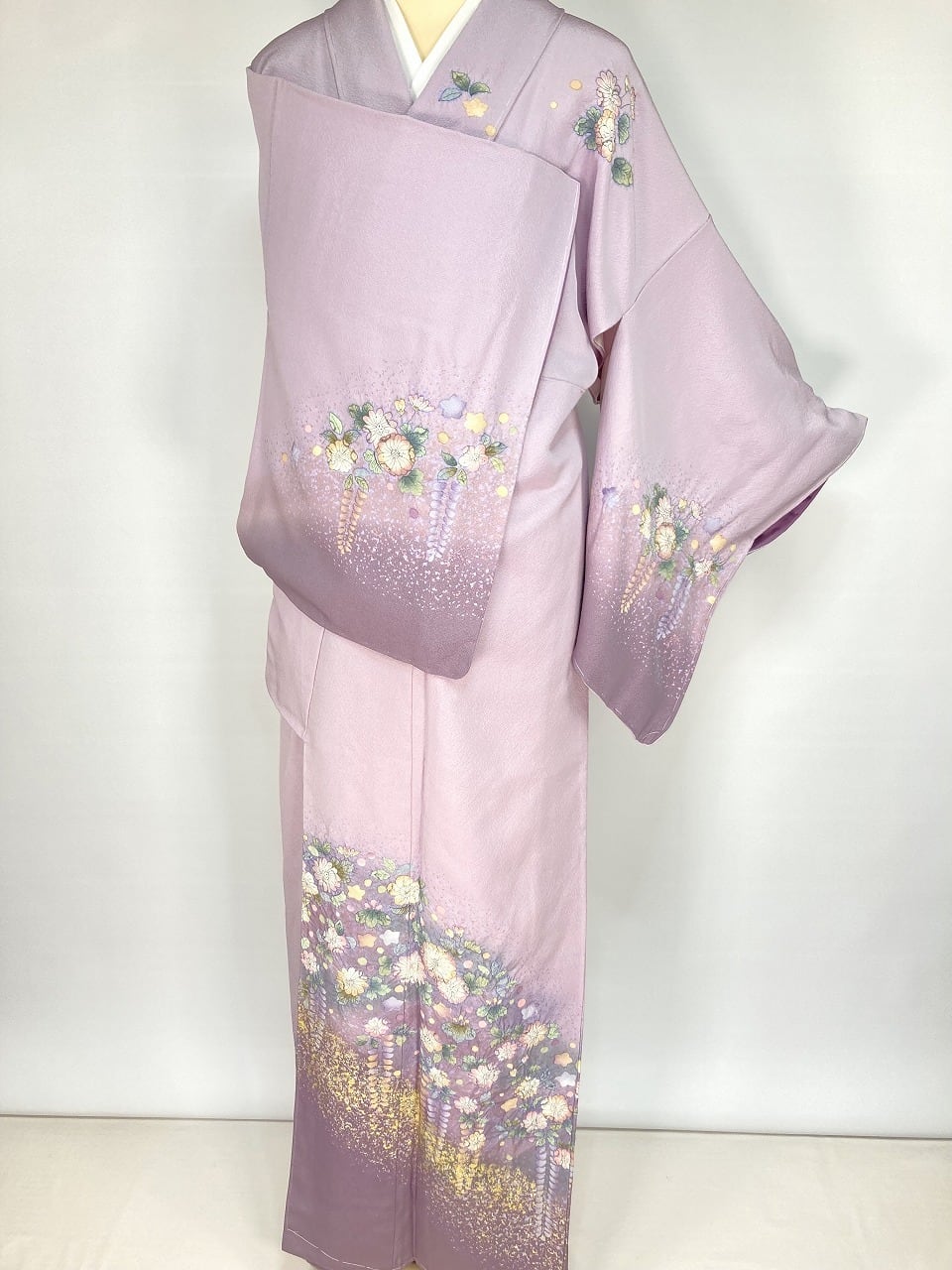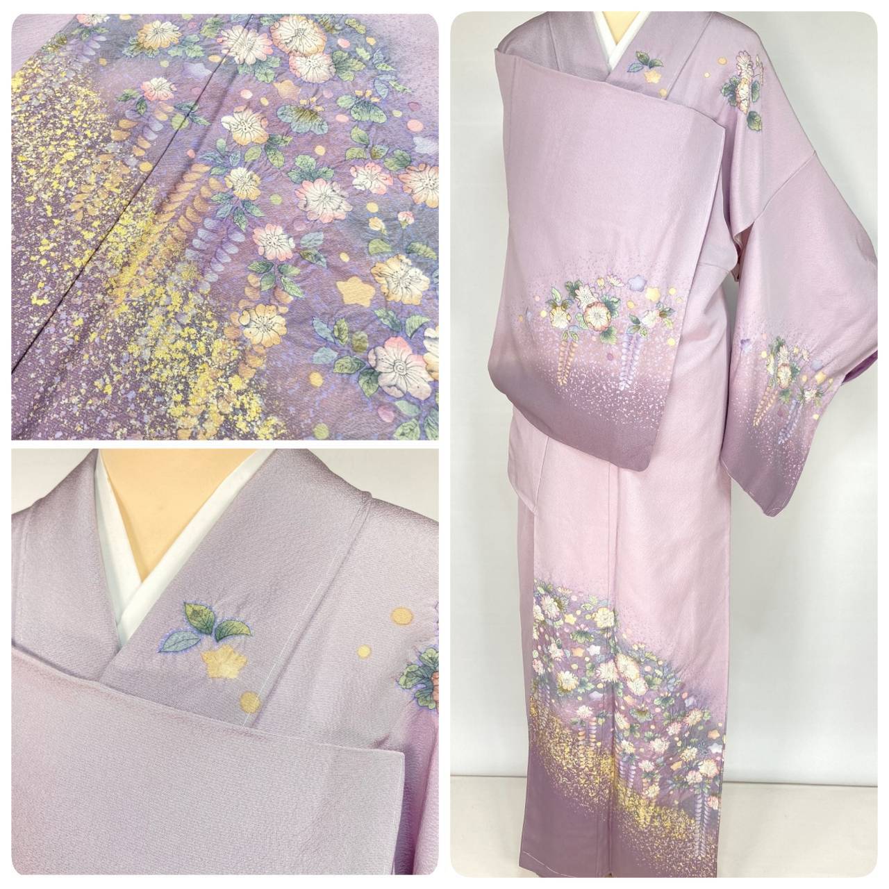 ◇女性を引き立たせる淡く優しく明るい紫の地色が美しく、鮮やかに彩られた立体的な[辻ヶ花]が映える、とても素敵な訪問着です。