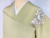春の日差しを受けた柳の若葉のような淡い黄緑の「薄柳」うすやなぎ (伝統色のいろは) のような、とても上品な地色です。