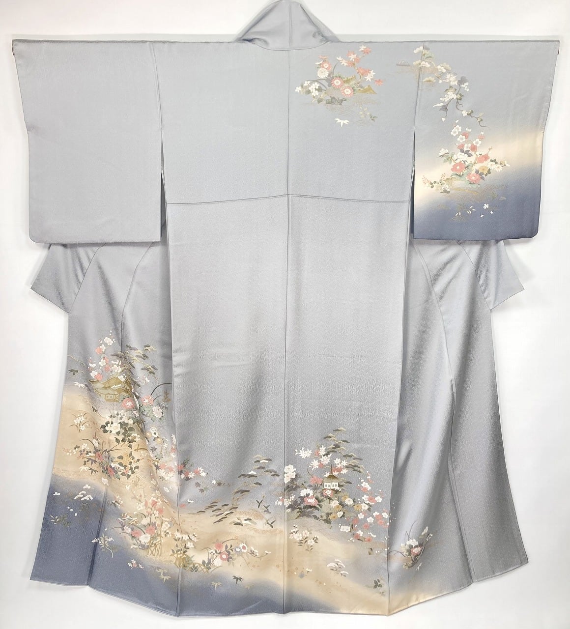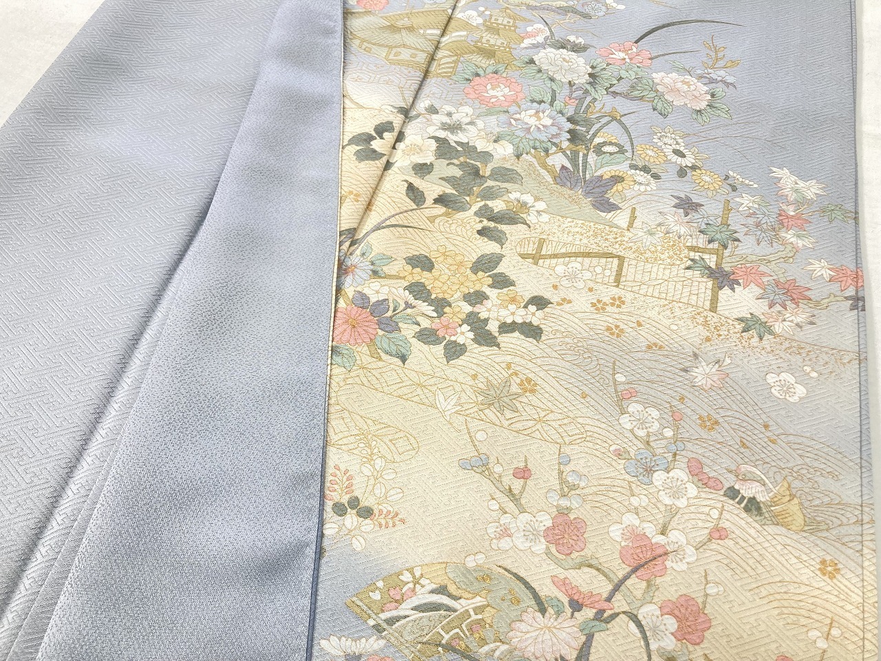 「上級武家」の女性が正装用に用いたもので、水辺の風景・橋・家屋・樹木・草花が配されます。