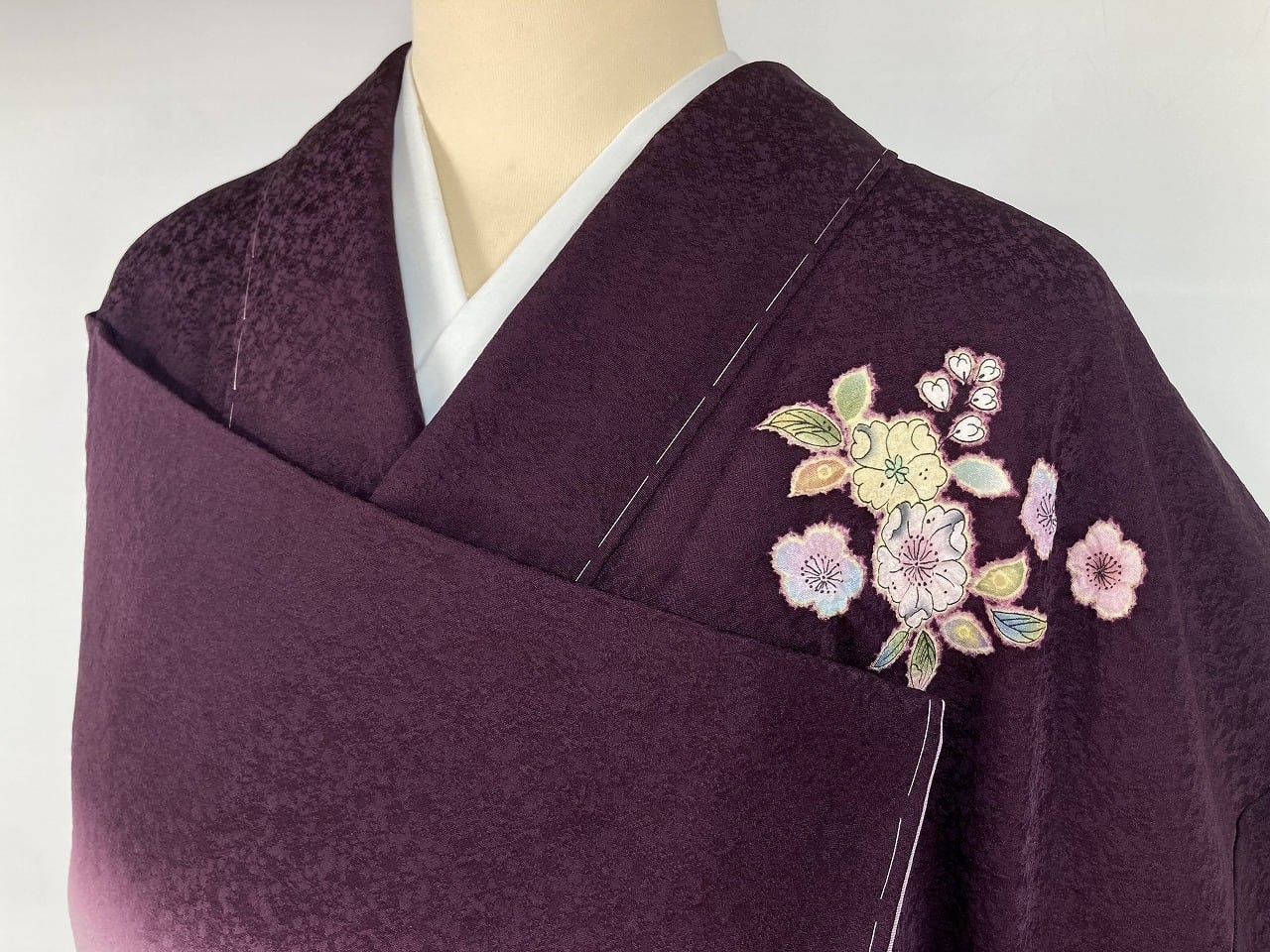 ◇淡い紫と深い紫のコントラストが映え、パステルカラーに彩られた[辻ヶ花]が目を惹く、大人の色気溢れるとても艶やかな訪問着です。