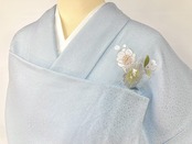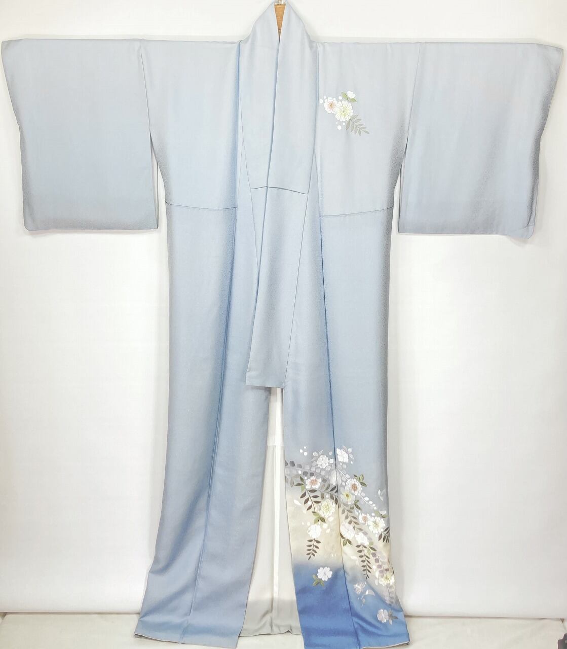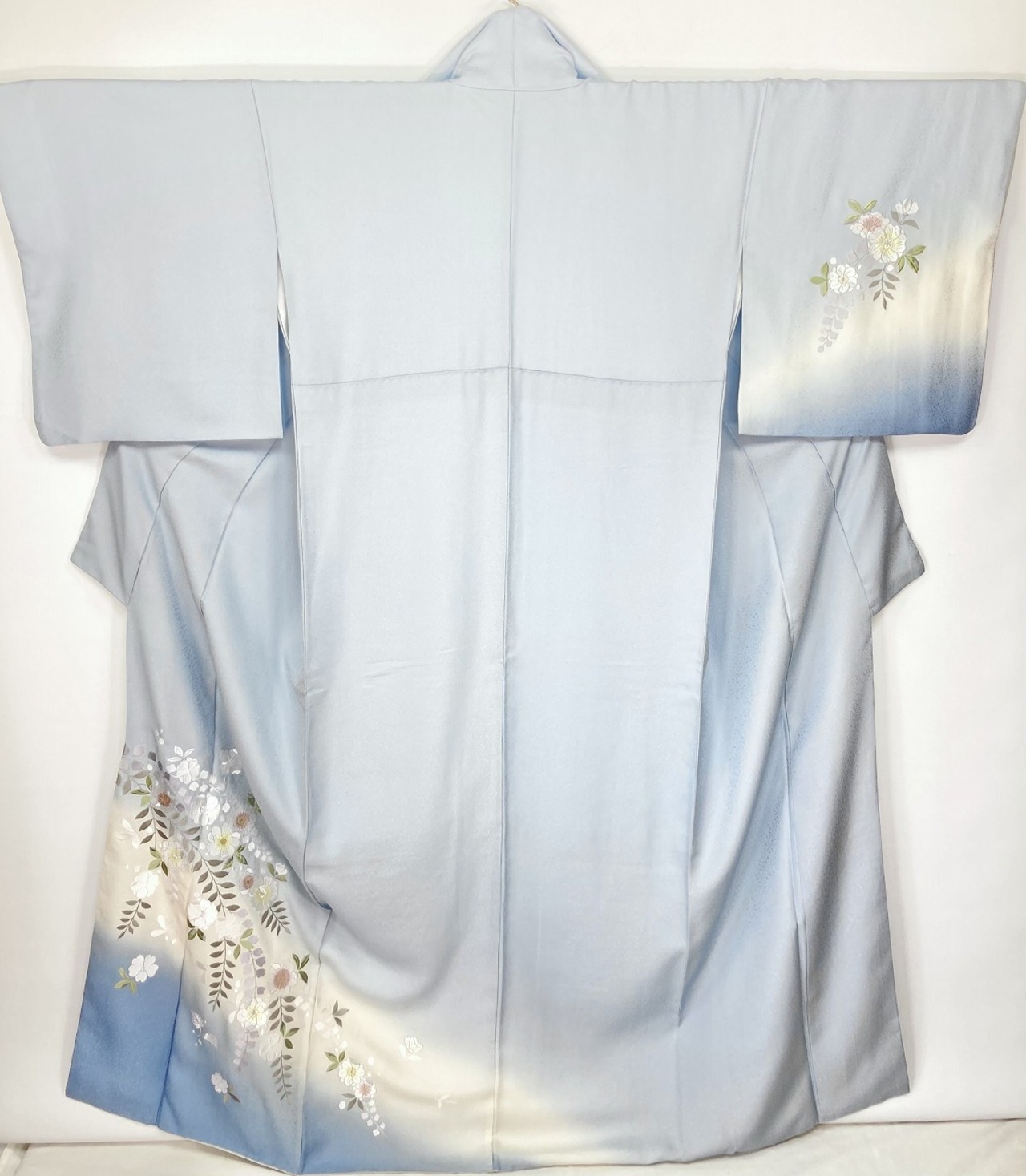 豪華総刺繍 辻が花 トールサイズ 訪問着 正絹 袷 水色 パステル ベビーブルー 1372