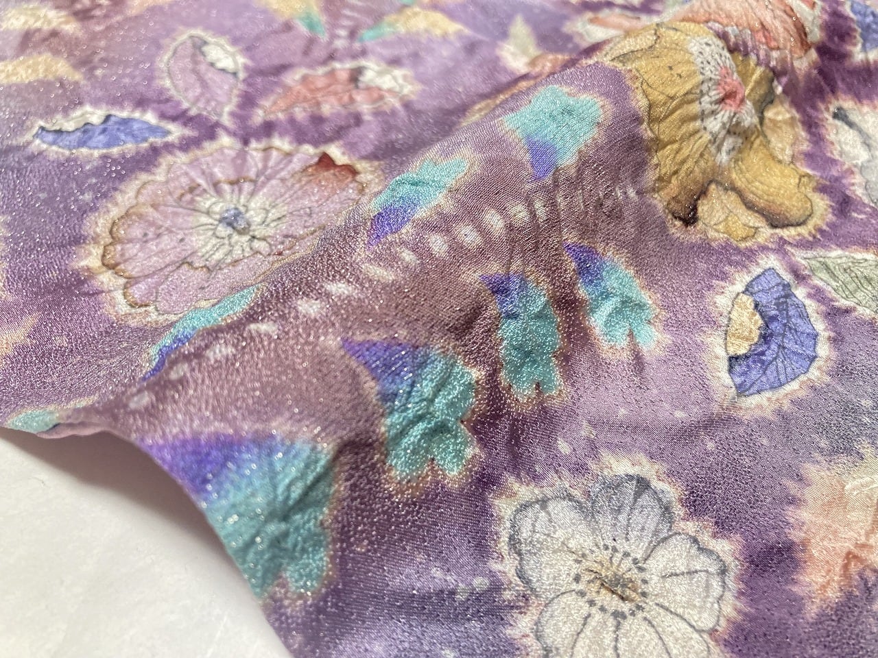 翠山工房 辻が花 絞り 銀通し 美品 辻ヶ花 訪問着 袷 正絹 紫 京藤 パステル 1386