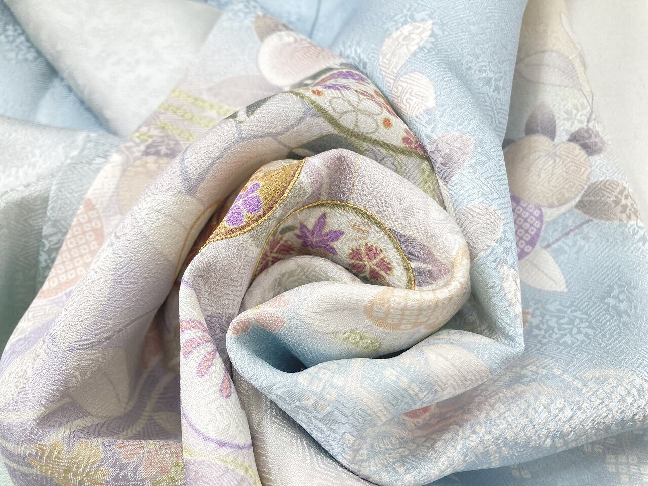 未使用 金駒刺繍 橘 訪問着 正絹 水色 黄色 紫 パステルカラー 1389