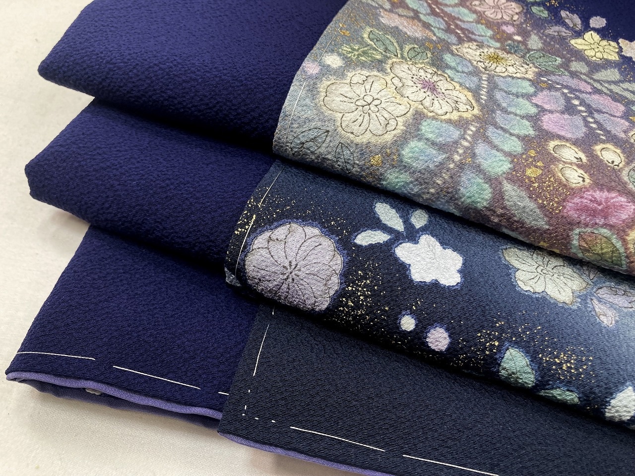 紺色がかった暗めの紫の「紫紺」しこん(伝統色のいろは)のような、とても高貴な地色です。