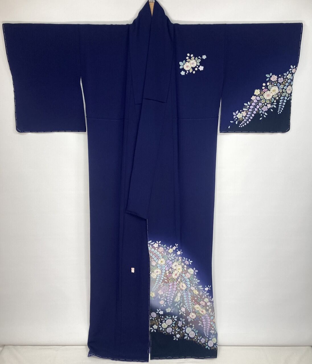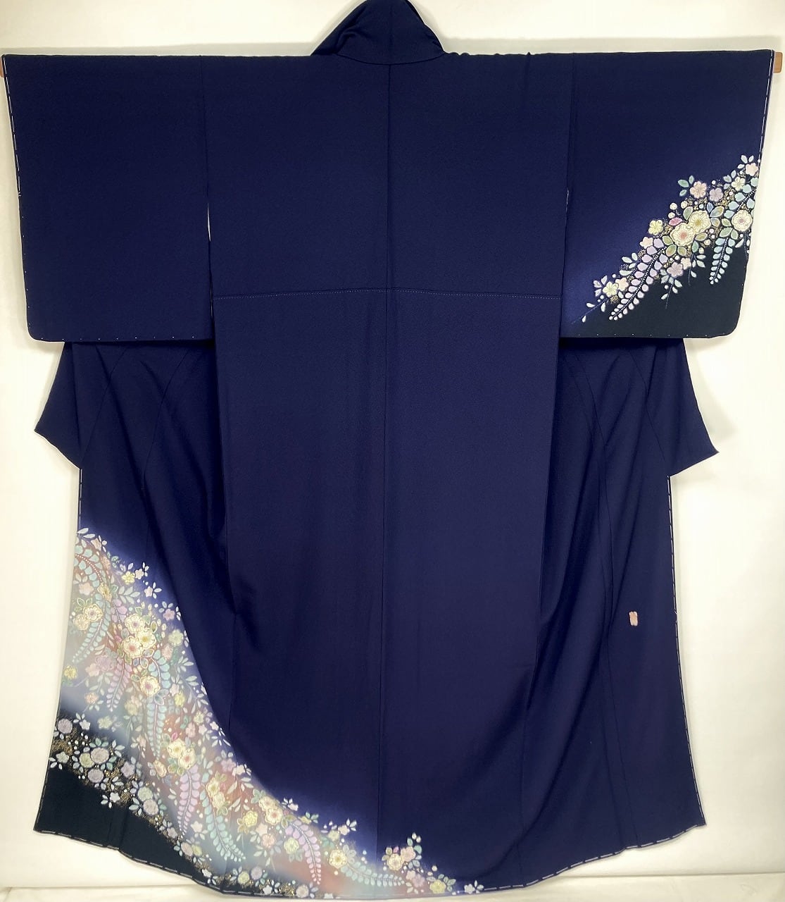 ◇深い紫紺色に清楚な白と鮮やかなパステルカラーのコントラストが映える、とてもエレガンスな高級訪問着です。