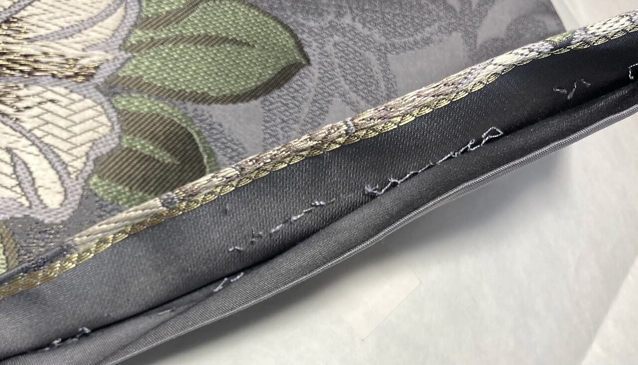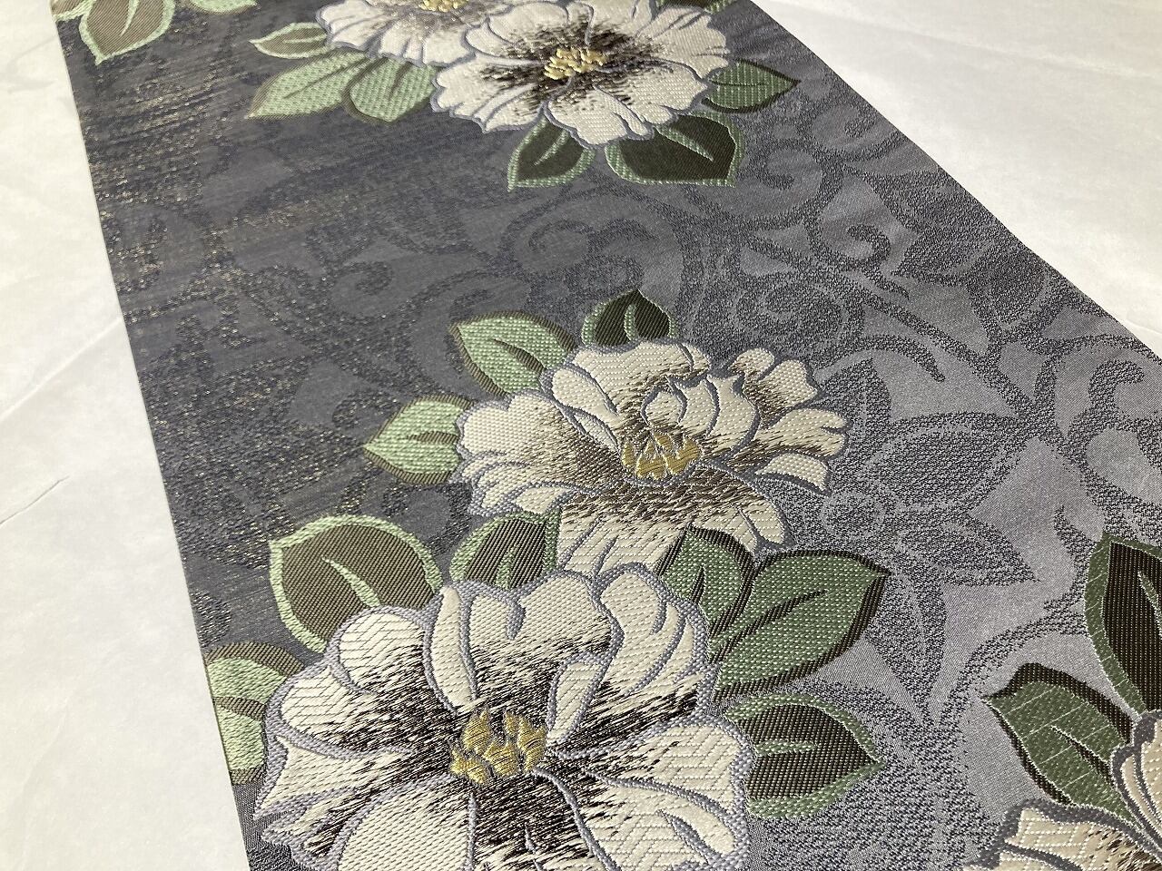 唐織り 金通し 椿 唐花 正絹 金糸 袋帯 黒 グレー 白 緑 709