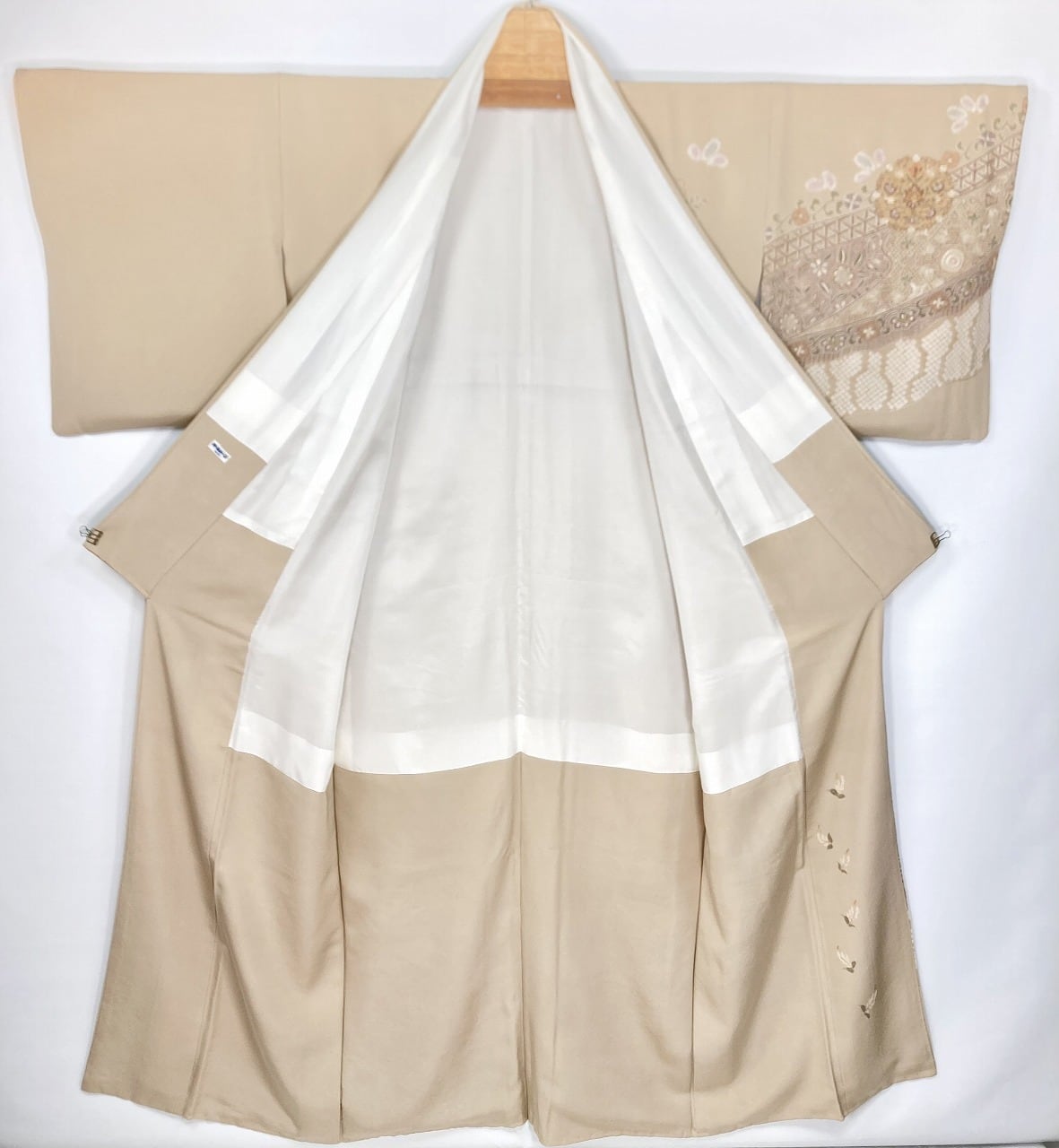 汕頭 蘇州 相良 総刺繍 中国三大刺繍 手絞り 訪問着 袷 正絹 ベージュ クリーム 1393