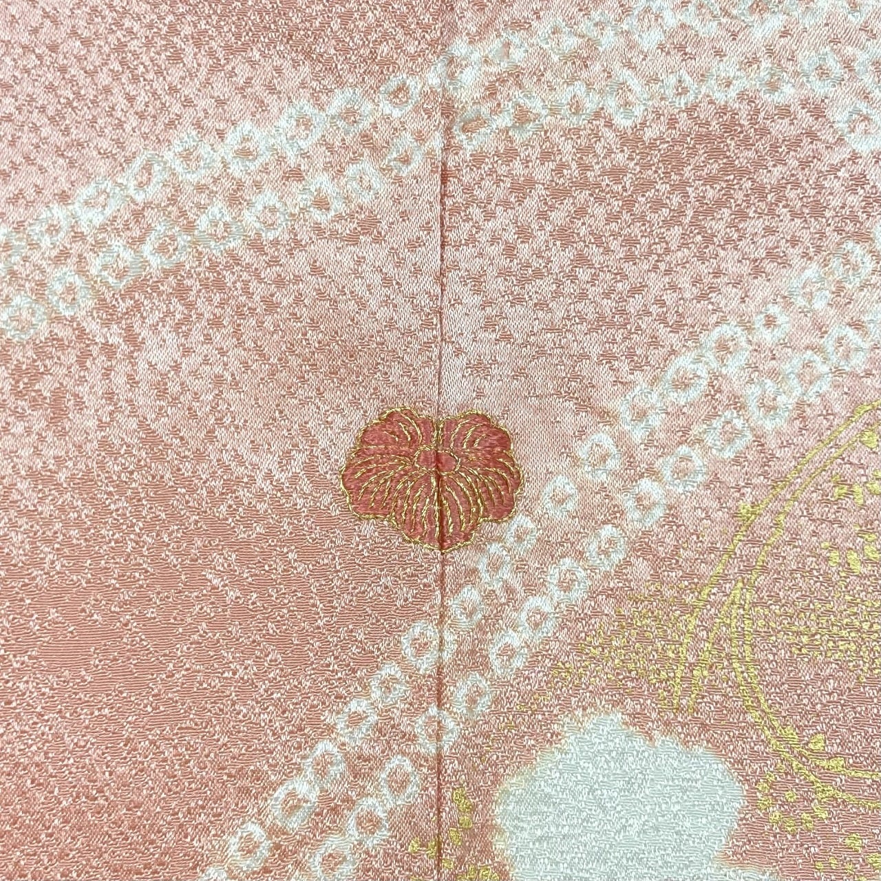 ・八掛は、表地と同じ生地を使った「共八掛」で、大きく絞り染めや手絞りをあしらった、お洒落で高級な仕上げになっております。