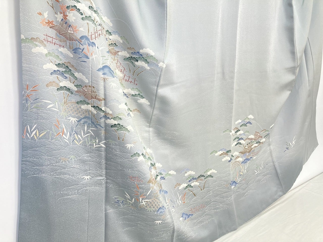 「上級武家」の女性が正装用に用いたもので、水辺の風景・橋・家屋・樹木・草花が配されます。