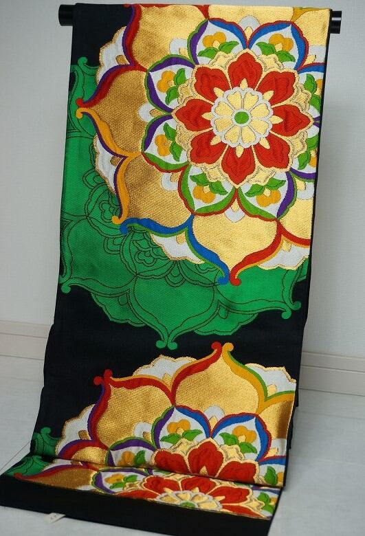 ■金糸をふんだんに使った大柄な唐花文様と緑のコントラストが目を惹くとても素敵な袋帯です。
