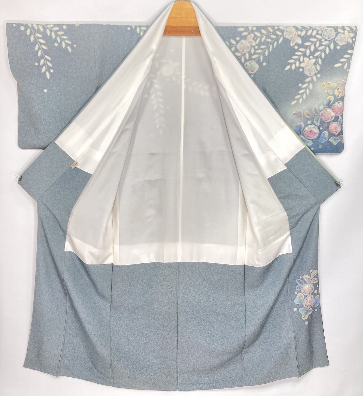 ◎八掛は、表地と同じ生地で天目染めを施した高級な「共八掛」で、繊細な「辻ヶ花 絞り」をあしらった、お洒落で粋な仕上げになっております。