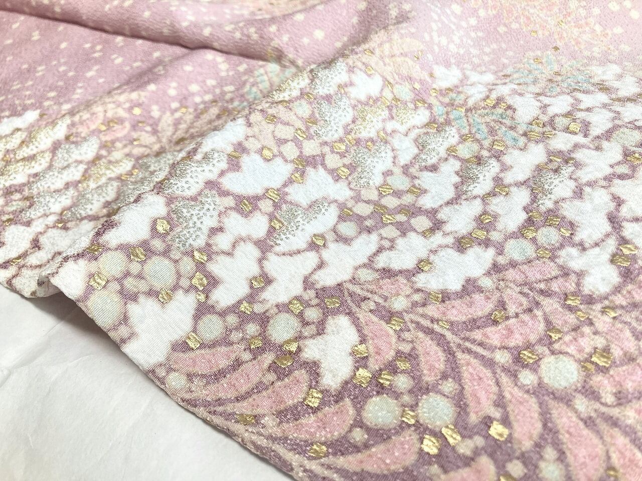 滝泰謹製 絞り染め 相良刺繍 十日町友禅 訪問着 袷 正絹 藤 ピンク 紫 白 パステル 1411