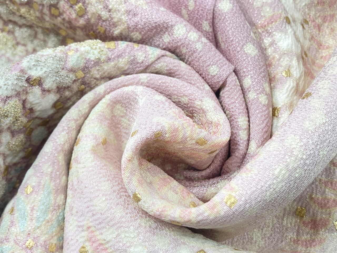 ■やわらかくしなやかで、適度なハリ・重みがある上質な「正絹」地に、きめ細かな凹凸を織り出し、奥行きや立体感が生まれております。