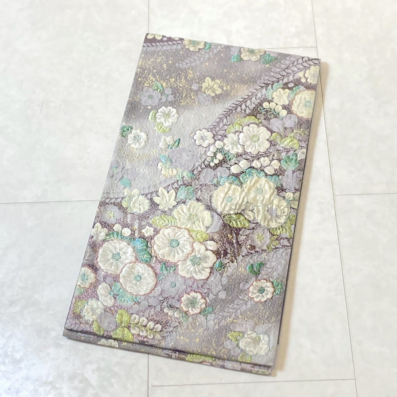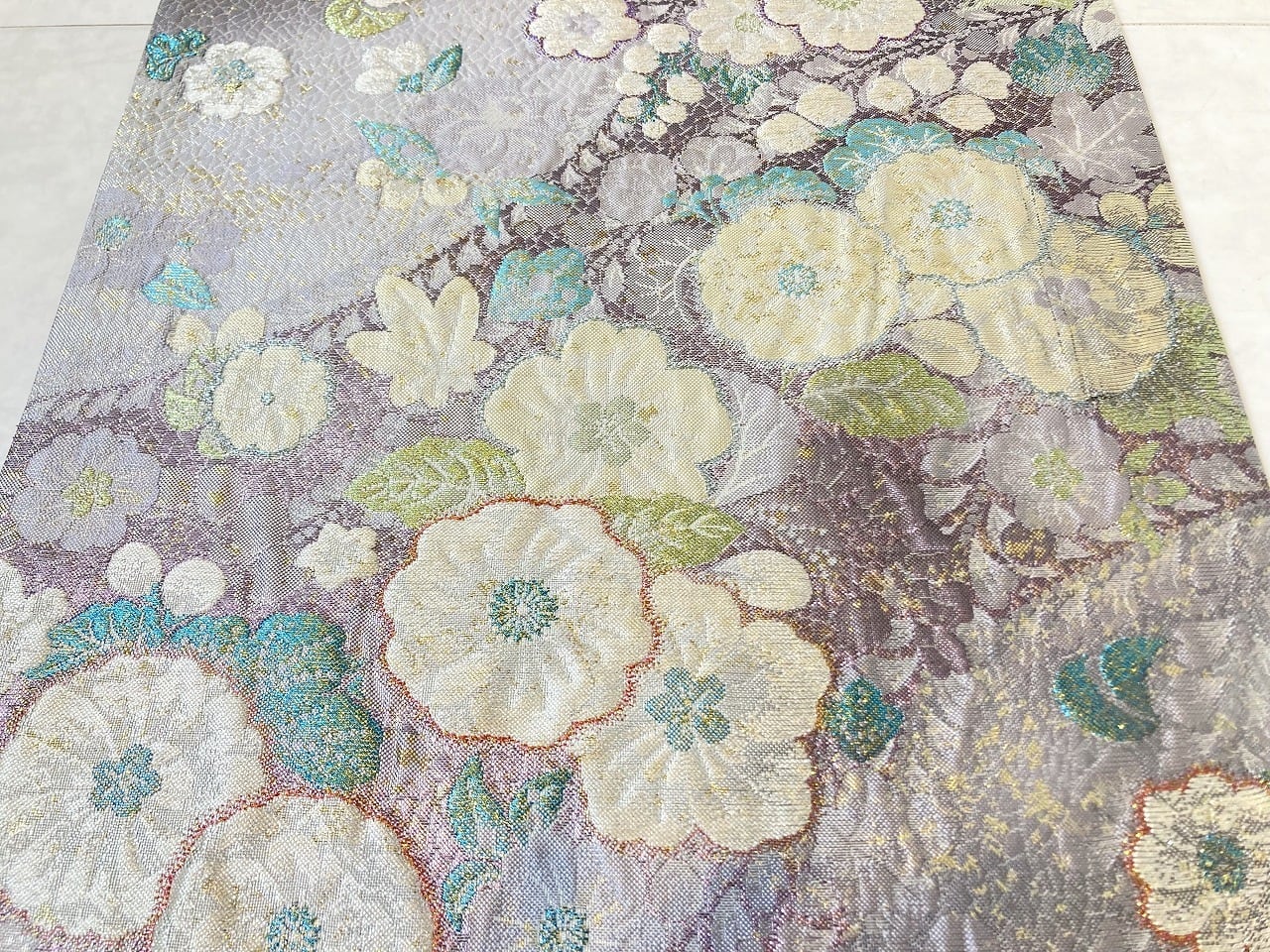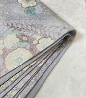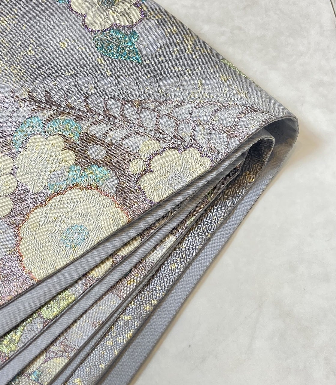 ◇淡く優しい藤色地に、清楚な白と紫やティファニーブルーに煌めく辻ヶ花が映える、とても素敵な高級袋帯です。