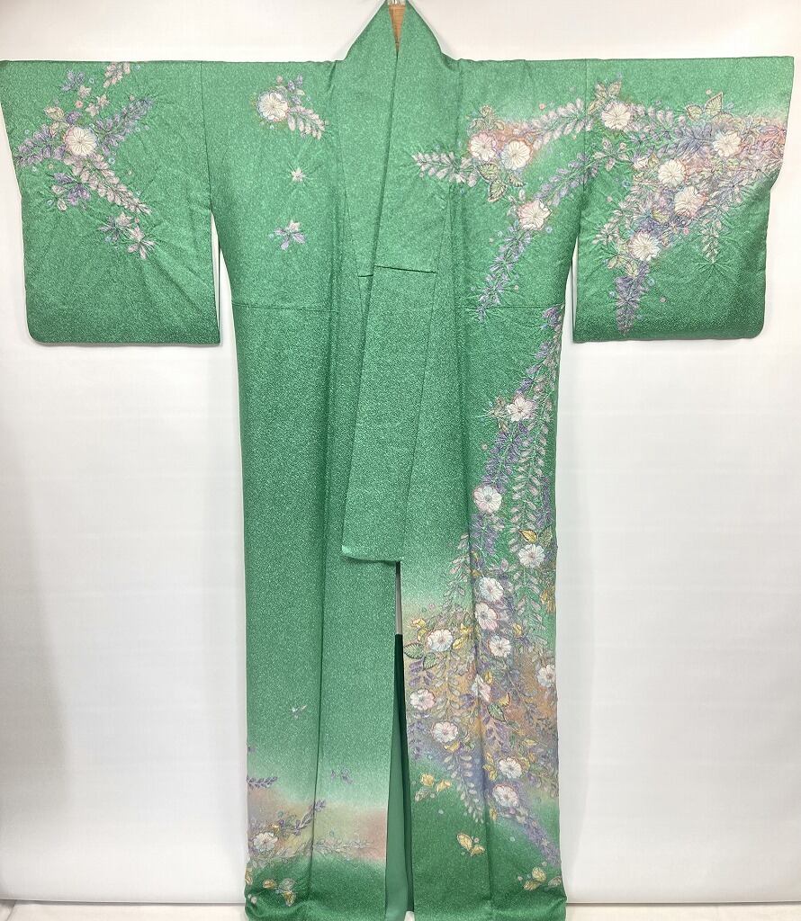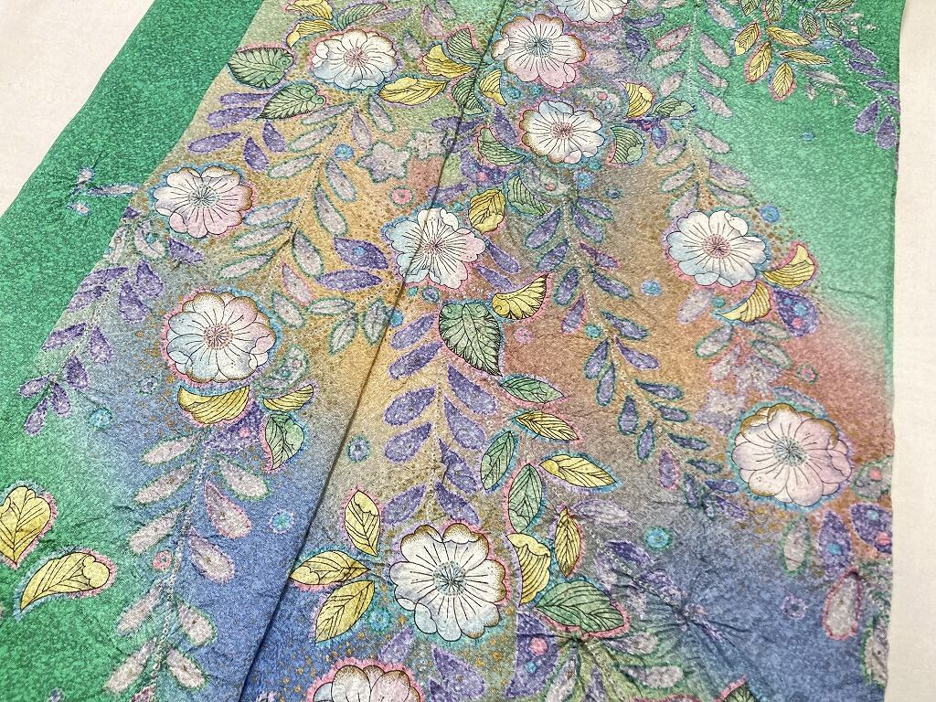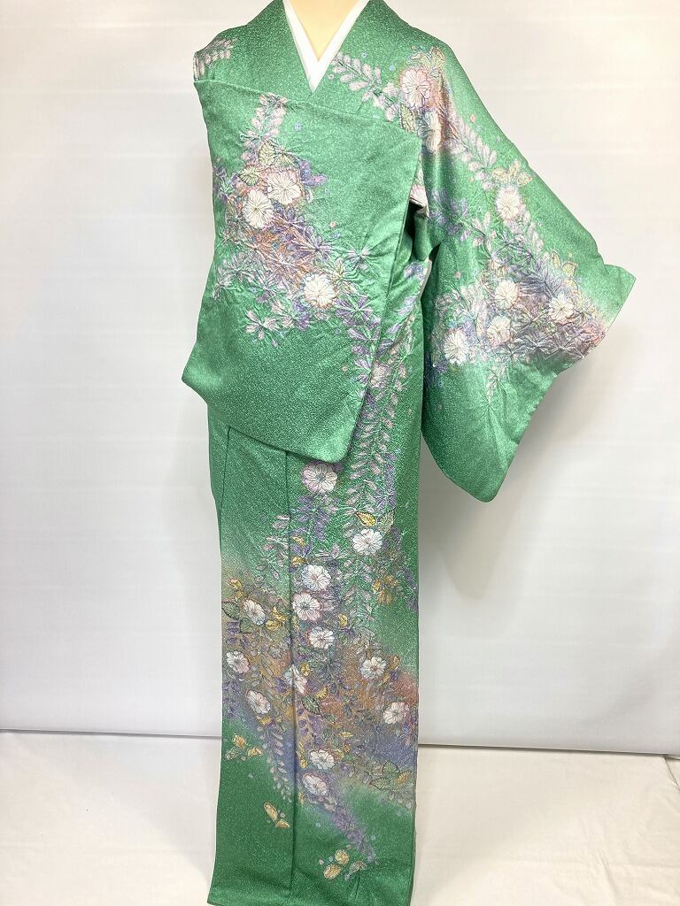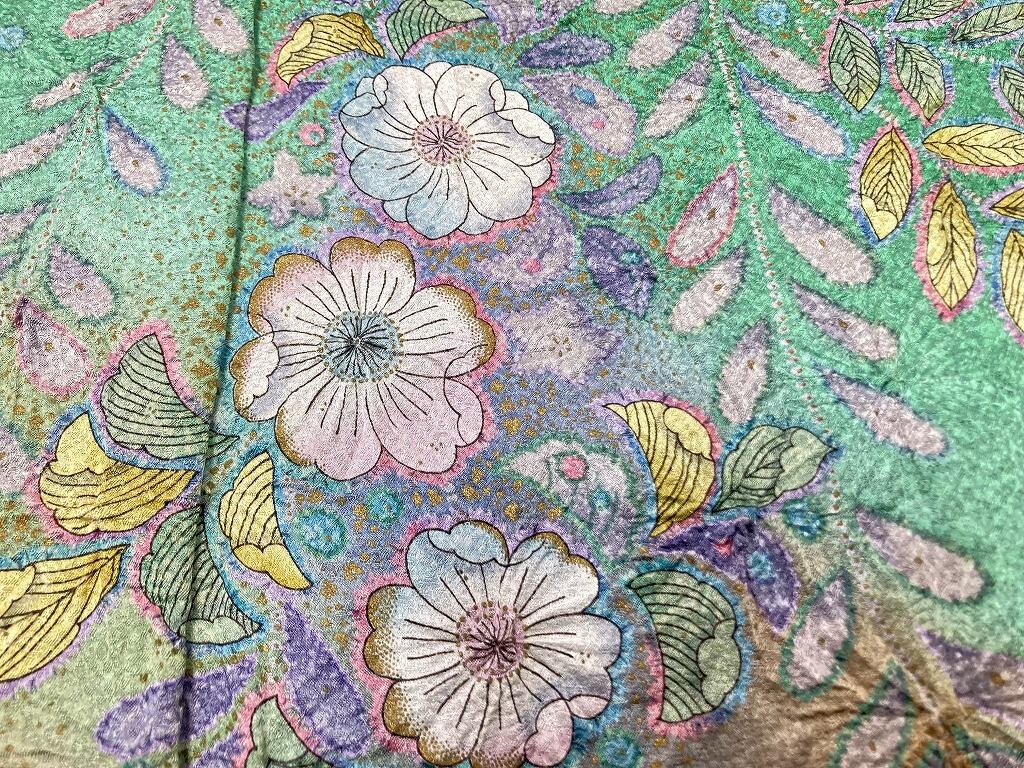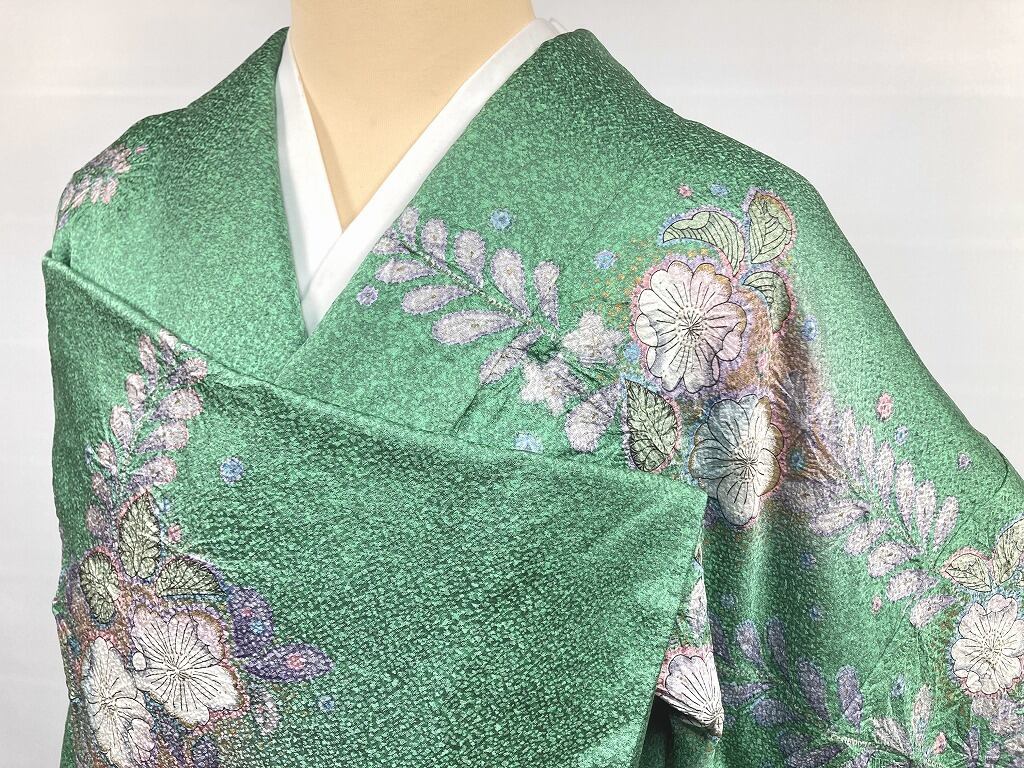辻が花 絞り 天目染め 辻ヶ花 訪問着 袷 正絹 緑 紫 翠色 1420