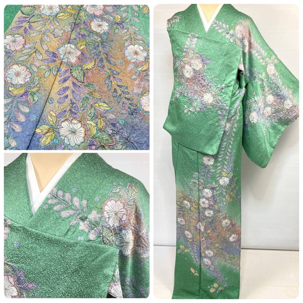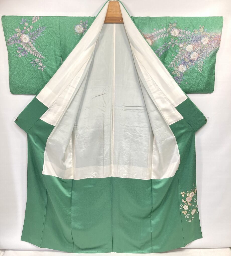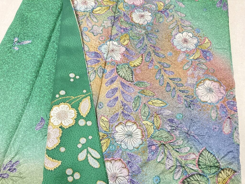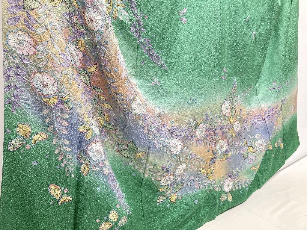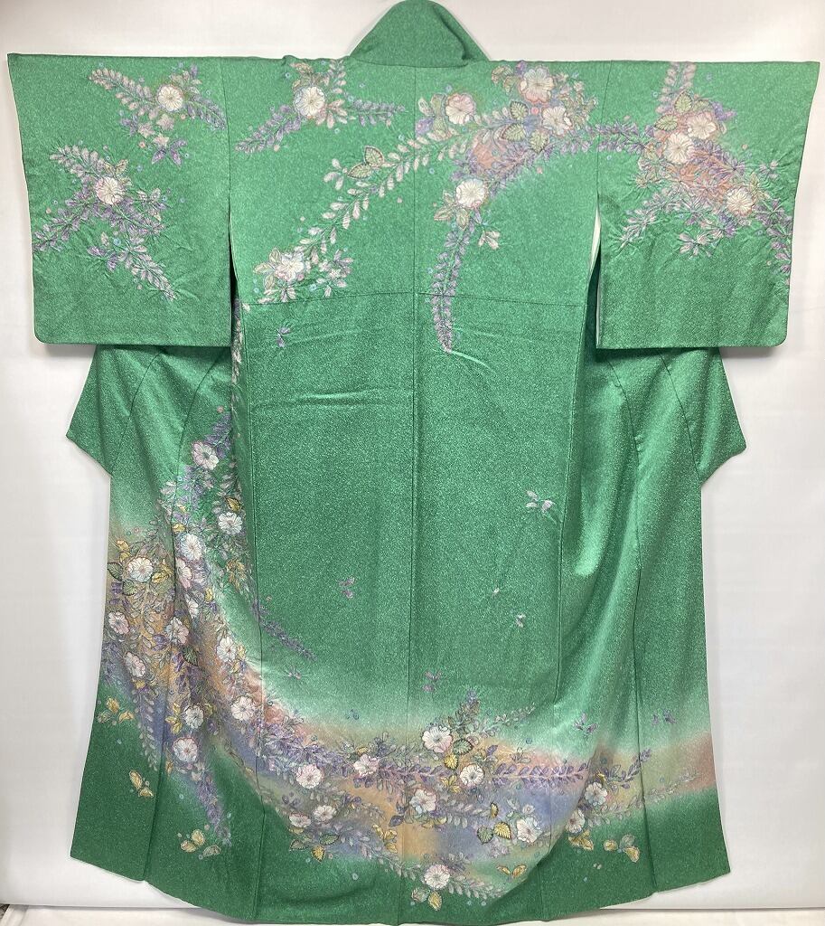 辻が花 絞り 天目染め 辻ヶ花 訪問着 袷 正絹 緑 紫 翠色 1420
