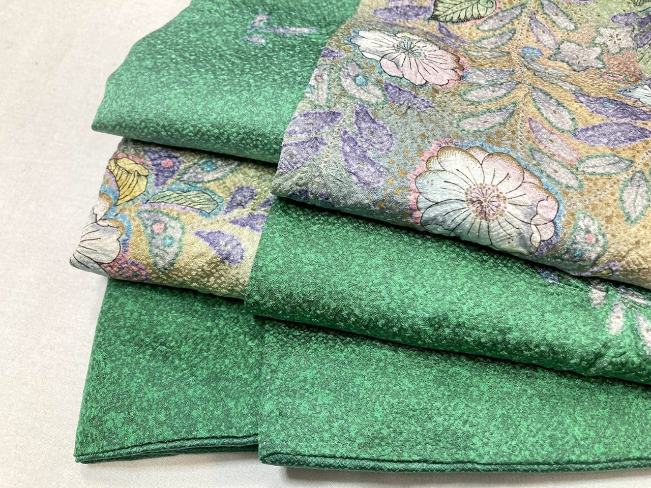 カワセミの羽色のような鮮やかな緑の「翠色」すいしょく (伝統色のいろは) を明るくしたような、とても素敵な地色です。
