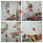 淡い黄変ですので、色合いや柄行的にもお召しになった際は、目立ちにくいと思います。