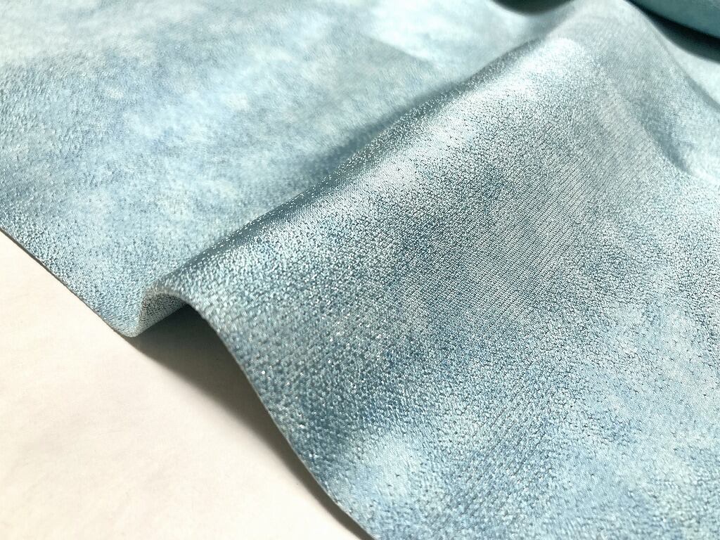 ■やわらかくしなやかで適度に重みのある上質な「丹後ちりめん」地、全体に銀糸を織り込んだ「銀通し」が美しく煌めき、華やぎを添えた豪華な仕上げになっております。