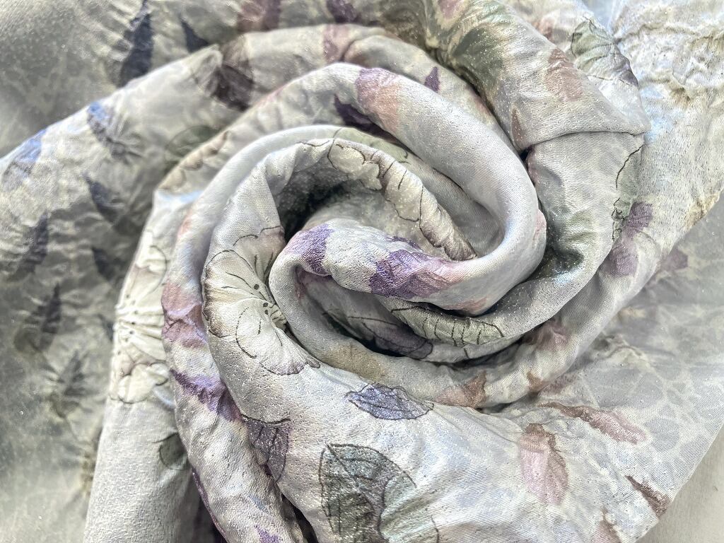 ■やわらかくて馴染みが良く、しっとりとして心地良い肌触りで、艶の美しい上質な「正絹」地に、繊細な「蝋結染」ろうけつ染め のスタイリッシュな模様により、奥行きや立体感が生まれております。