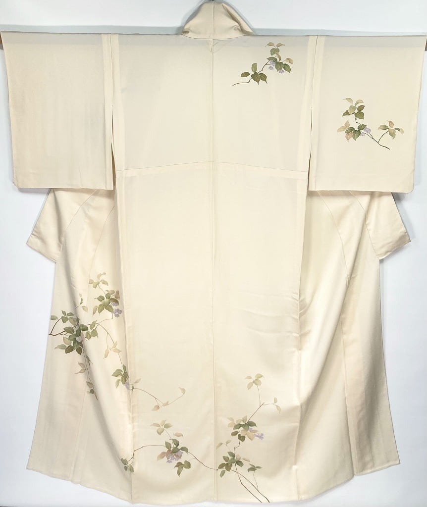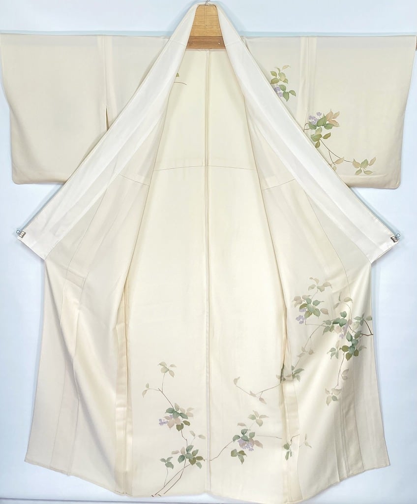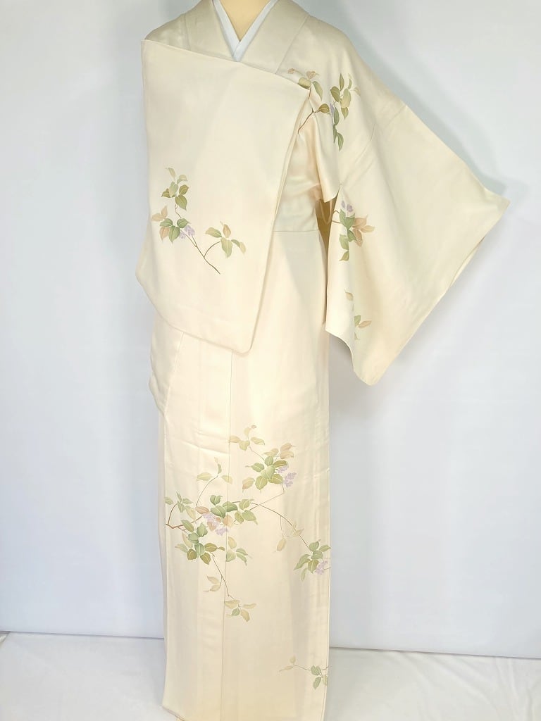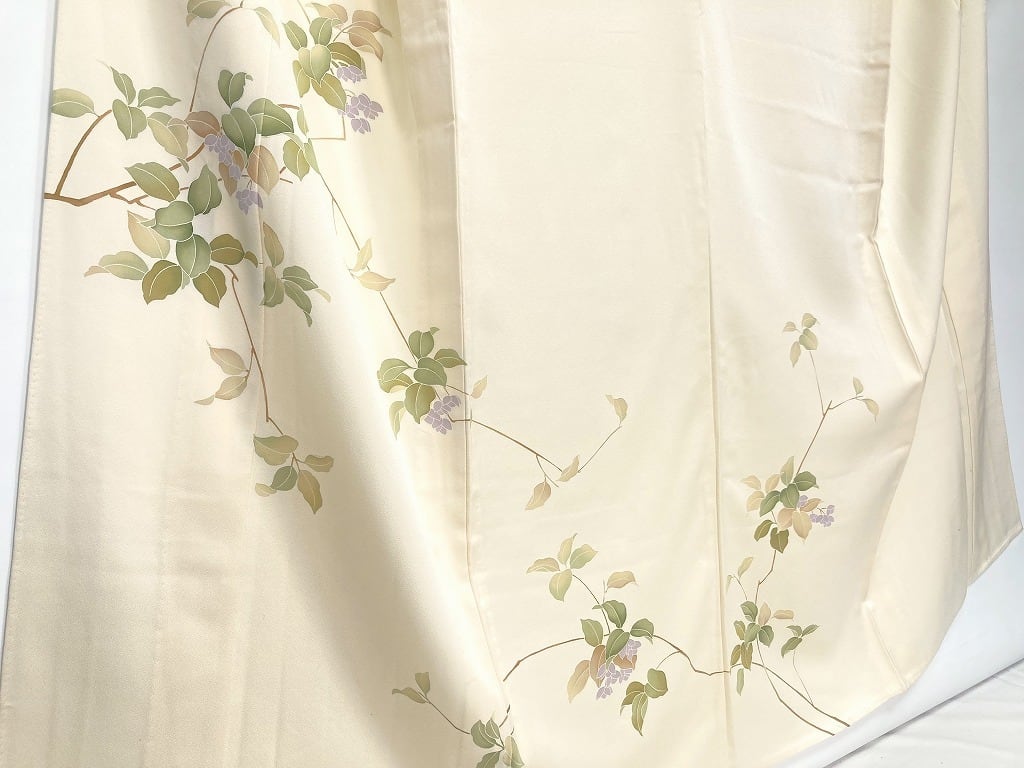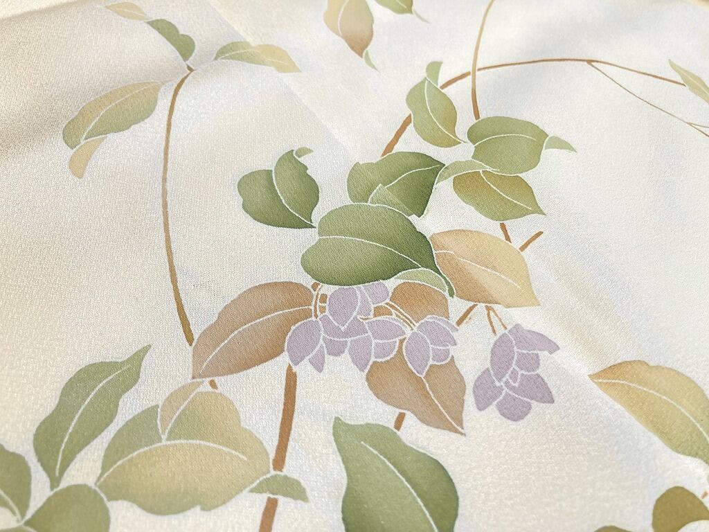【単衣】手描き友禅 夏蝋梅 ナツロウバイ 正絹 訪問着 クリーム色 白 1426