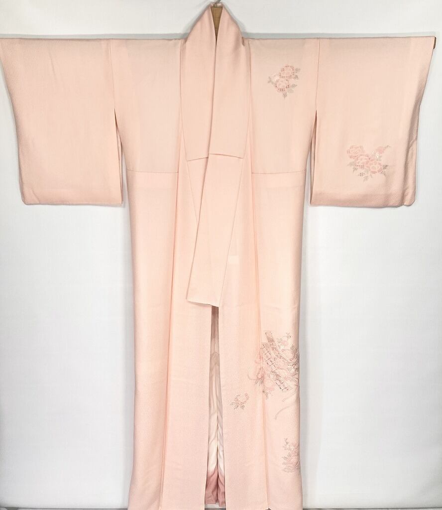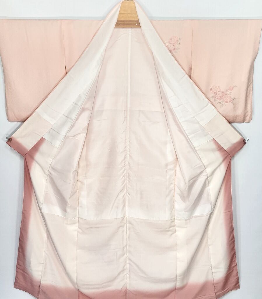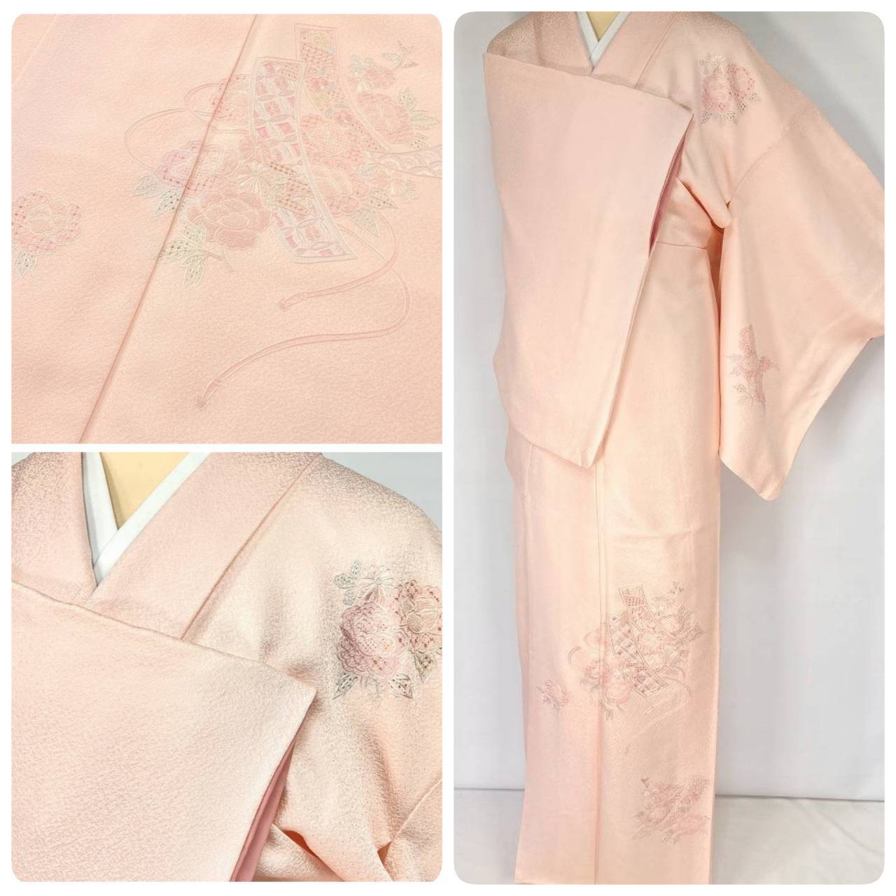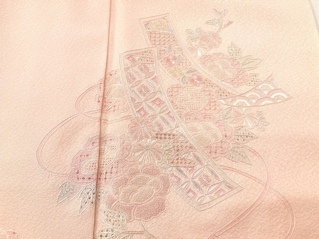 汕頭 蘇州 相良 総刺繍 中国三大刺繡 花柄 短冊 訪問着 袷 正絹 ピンク 桜色 1430