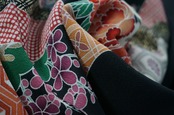 衿・袖・裾等の裏側に白い生地を付け、重ね着をしているかの様に見せる仕立てです。