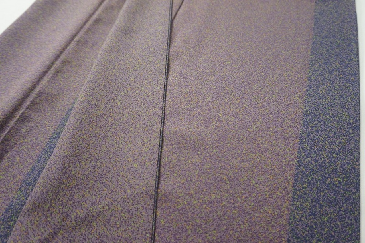 美品 たたき染め 縦縞 ちりめん 小紋 正絹 紫 鳩羽色 185