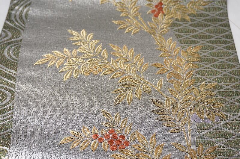 さが美謹製 南天柄 袋帯 グレー 金糸 銀糸 134