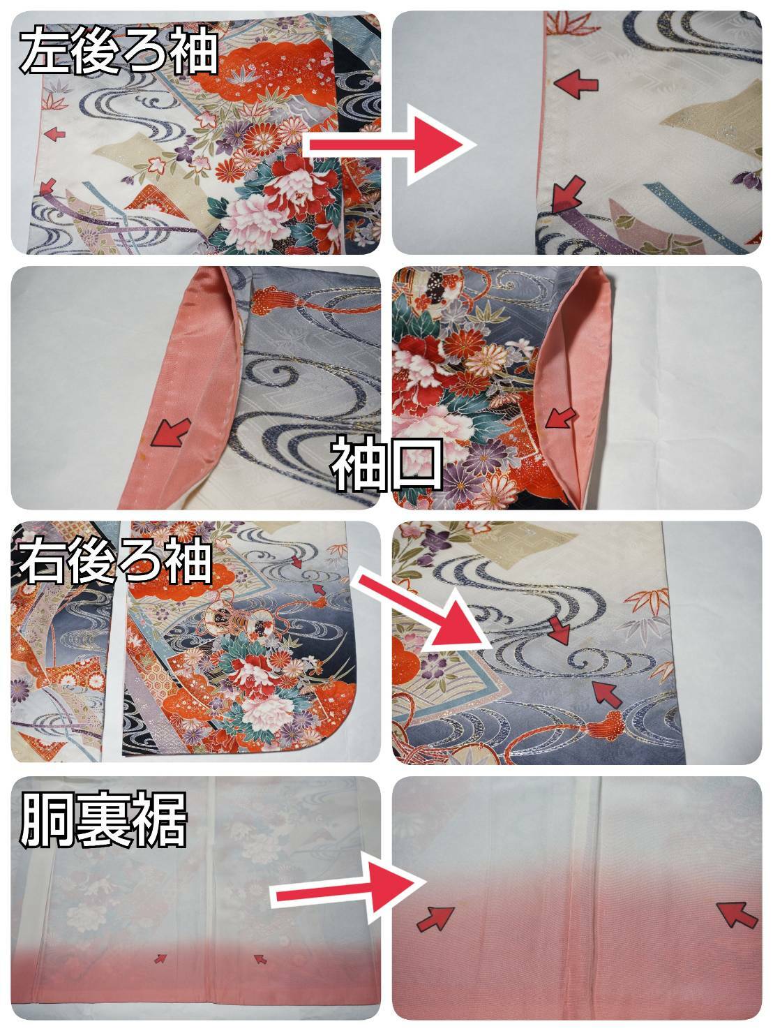 ・右後ろ袖と、胴裏の裾付近にうっすらとしたシミ