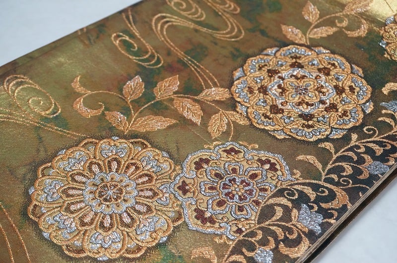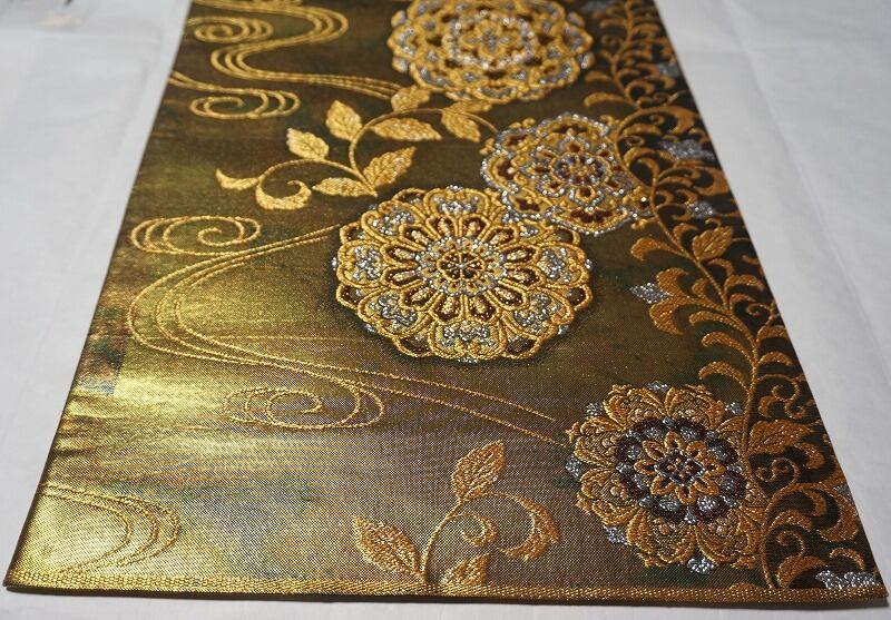 右端に華麗に描かれた唐草や、煌びやかに光り輝く銀糸がアクセントとなりとても素敵です。