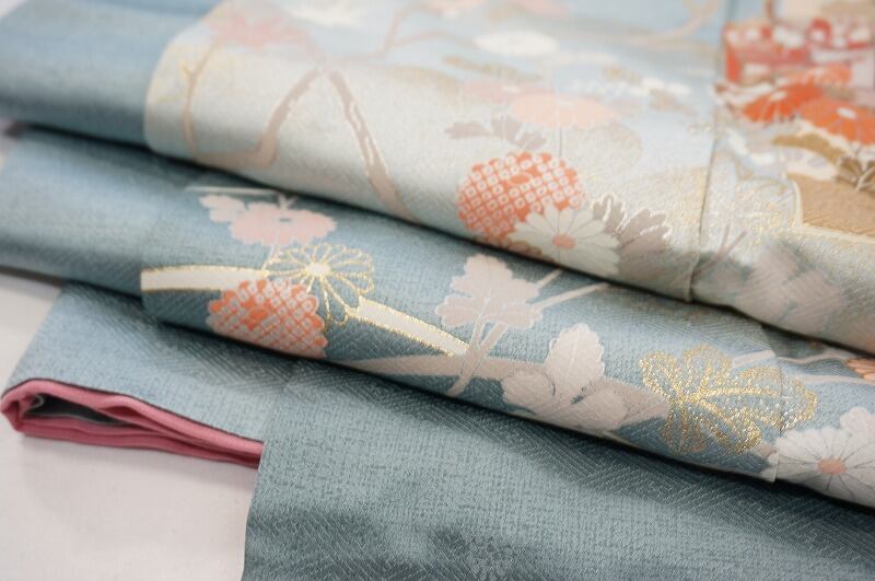 やまと誂製 金彩友禅 熨斗 花柄 訪問着 正絹 アイスブルー 水色 329