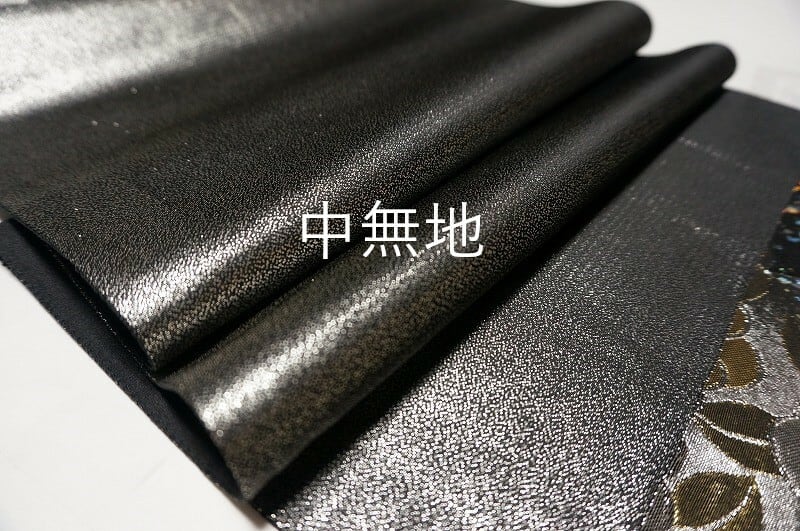 青銅箔 椿づくし 袋帯 金銀糸 黒 シルバー 182