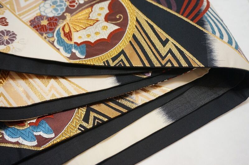 美品 唐織り 振袖 袋帯 金糸 ベージュ 黒 181