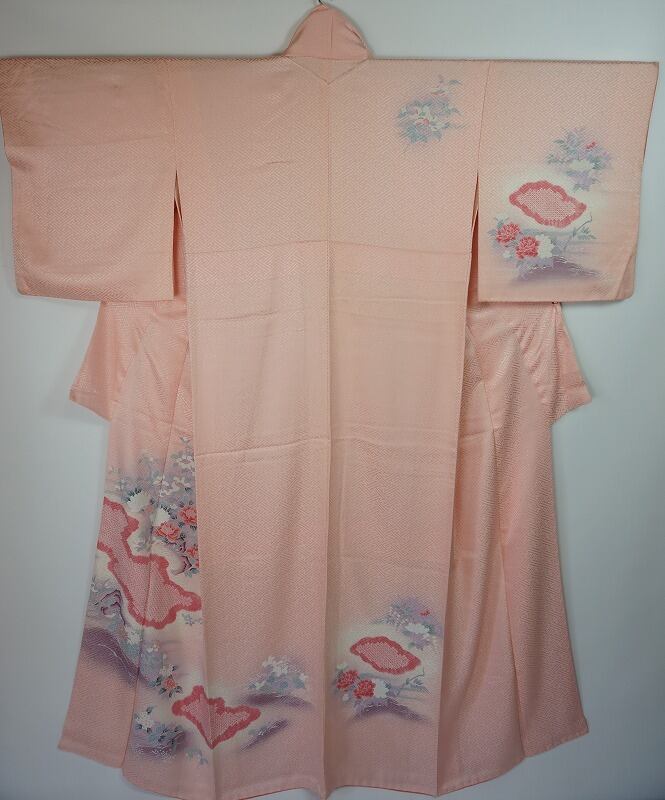 三越謹製 鹿の子絞り 訪問着 牡丹 花柄 正絹 ピンク 351