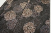 節紬 華紋 オリエンタル 小紋 黒 茶 紫 323