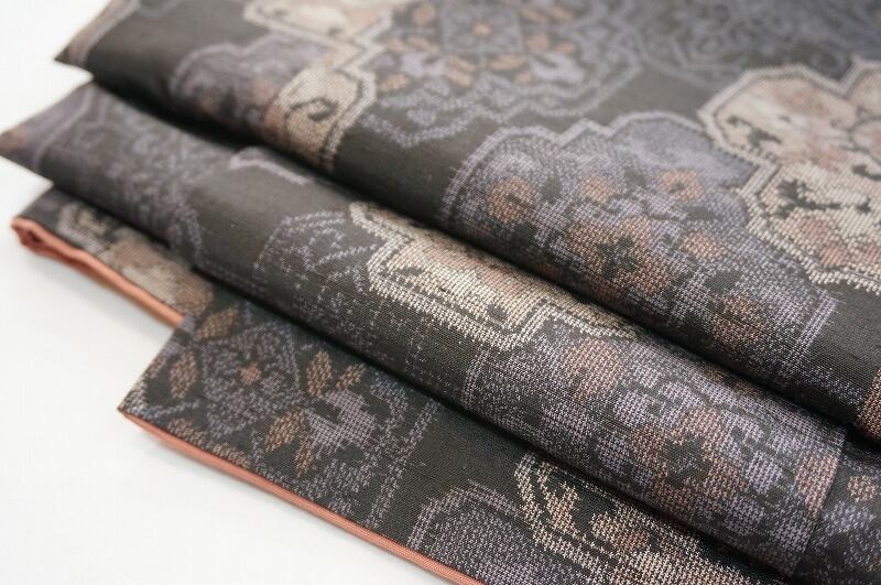 ■丹念に織り出された「節」の風合いが良く、奥深い黒地に優雅な華紋を大変きめ細かく織り出した、オリエンタルな色柄のとても粋な大人のお洒落着です。