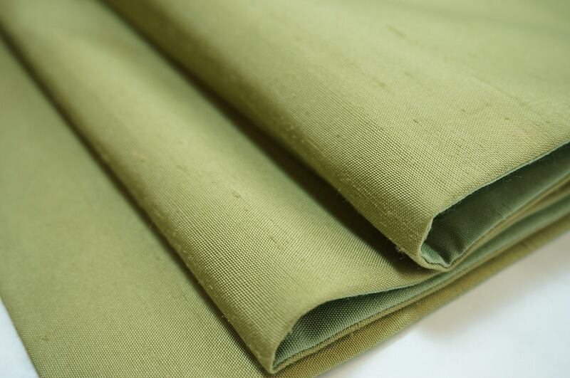 汕頭 相良刺繍 真綿紬 洒落袋帯 柳茶 梅幸茶 緑 黄緑 186