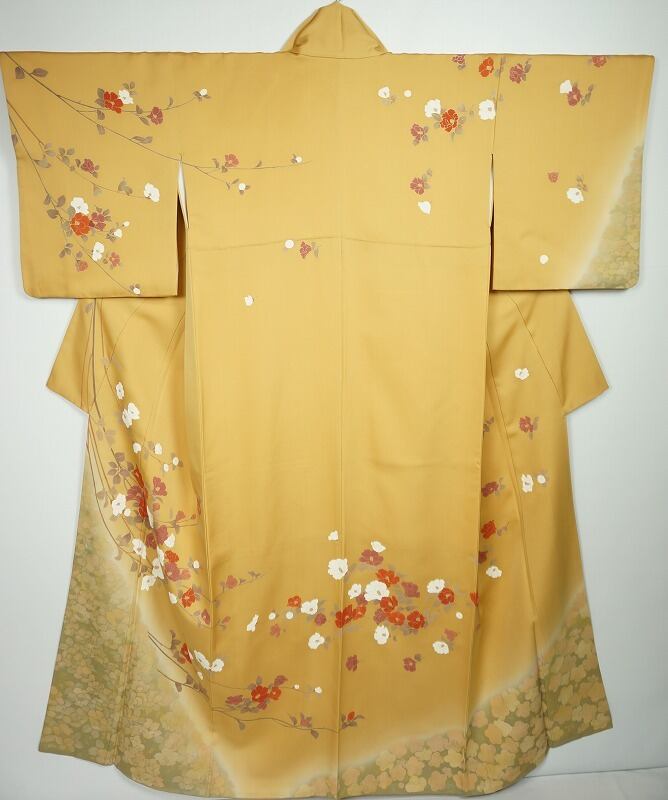 椿づくし 友禅 金彩 訪問着 正絹 櫨染 黄色 453
