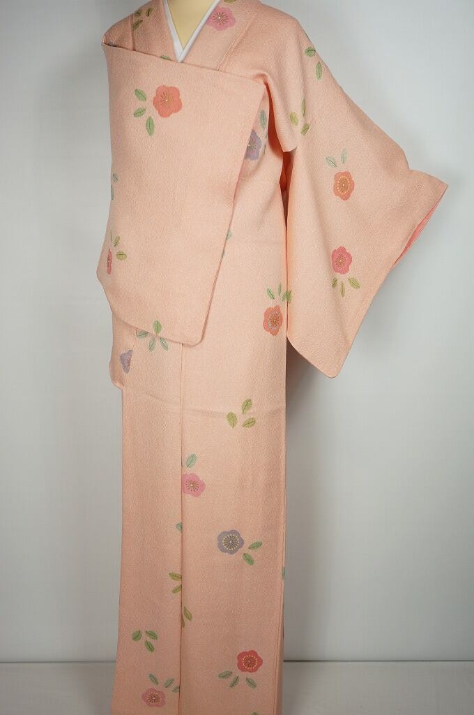 未使用 作家物 天目染め 小紋 花柄 鴇色 ピンク 510
