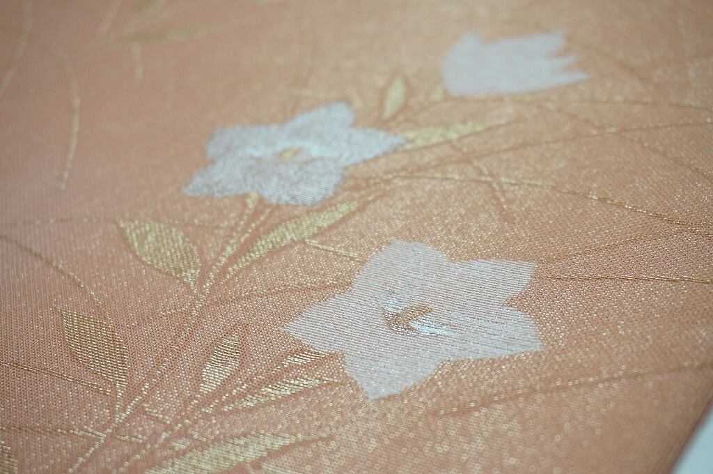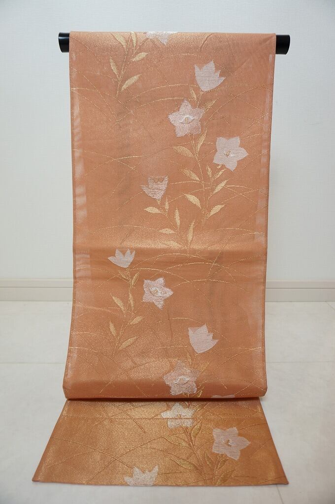 【夏帯】西武百貨店 紗 金通し 袋帯 桔梗 絹 金銀糸 オレンジ 257