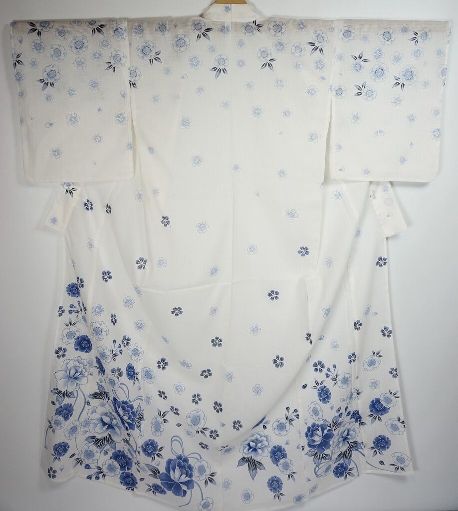 未使用【浴衣】絵羽模様 牡丹 桜 白 ブルー 019