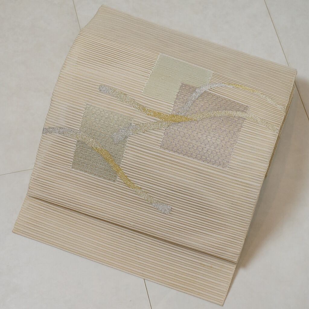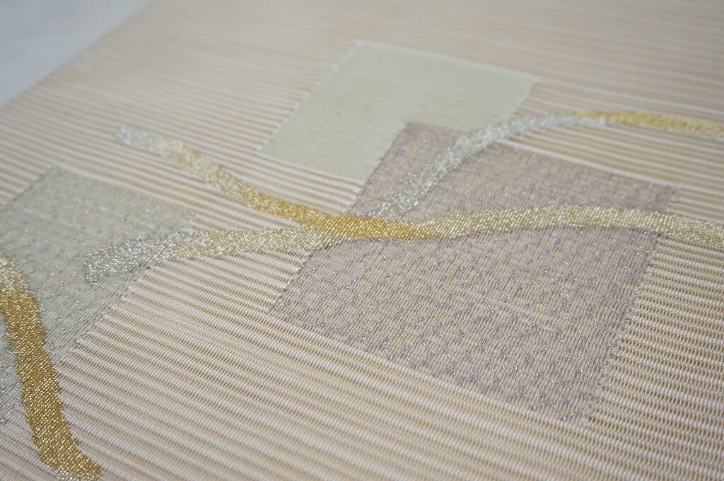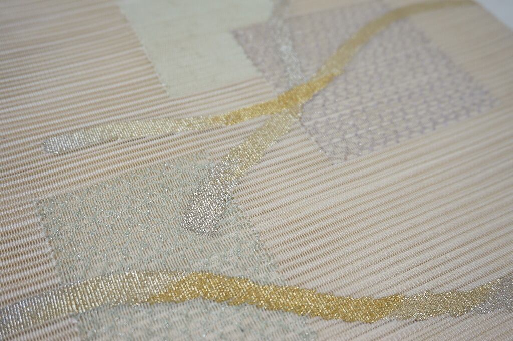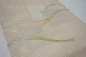 【夏帯】絽綴れ 長尺 名古屋帯 絹 金銀糸 生成り色 269
