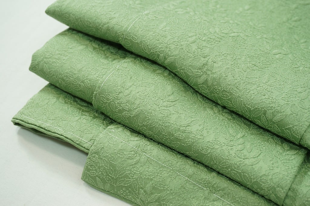 ■若葉のようなやわらかい黄緑の「若葉色」(伝統色のいろは) を落ち着かせたような、上品でさわやかな地色です。